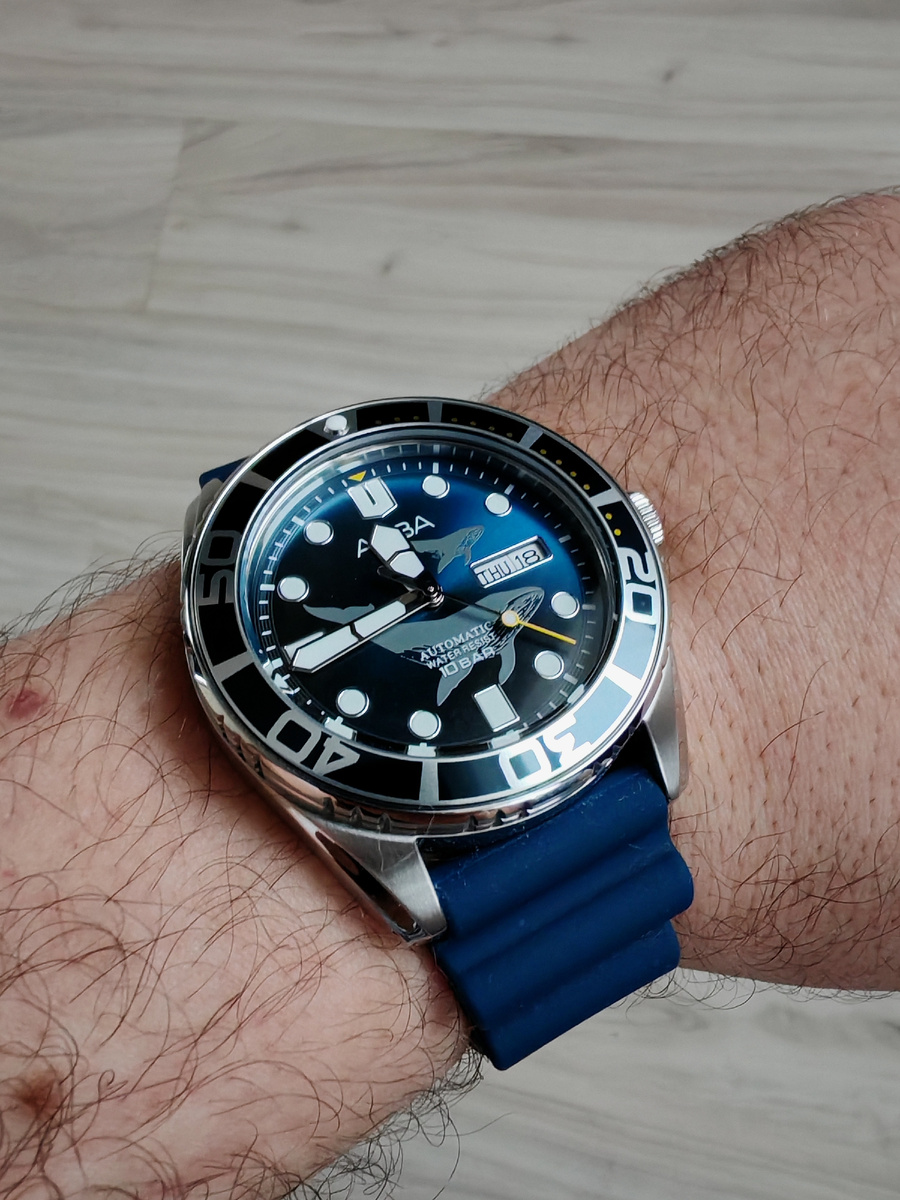 Мои новые часы Seiko-Alba с китами, механизм Y676 (7s*), настройка с завода, показания снимались с разницей в несколько секунд, положение циферблатом вниз, пружина заведена больше половины, задняя крышка снята.