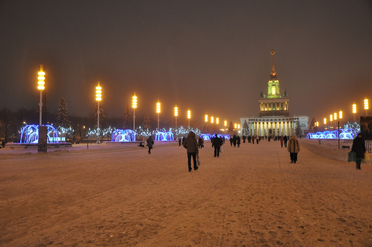Прогулки по вечерней Москве в новогодние праздники — это особая традиция, позволяющая окунуться в атмосферу праздника и насладиться красотой города. ВДНХ в новогоднем убранстве выглядит особенно впечатляюще. И предлагаю вспомнить как это было в разные годы. 2013 год: Моя первая прогулка по новогоднему ВДНХ. Это было 21 декабря 2013 года, и было довольно снежно =) Зато в 2025 году декабрь нас не особо радует снегом. 2015 год Каждый год организаторы стараются удивлять посетителей новыми концепциями и мероприятиями. Фотографии сделаны 4 января 2015 года. В зимний сезон 2014/2015 года было много фигурок с героями из Союзмультфильм. Зимние Олимпийские игры 2014 года в Сочи оставили яркий след в нашей жизни. Талисманы и символы Олимпиады в Сочи можно было увидеть повсюду, в том числе и на ВДНХ. 2016 год Оказывается 25 ноября 2014 года на ВДНХ открылся самый большой каток в Москве. За эти годы каток ВДНХ менял размеры, расположение, а также успел установить несколько рекордов. В свой первый
