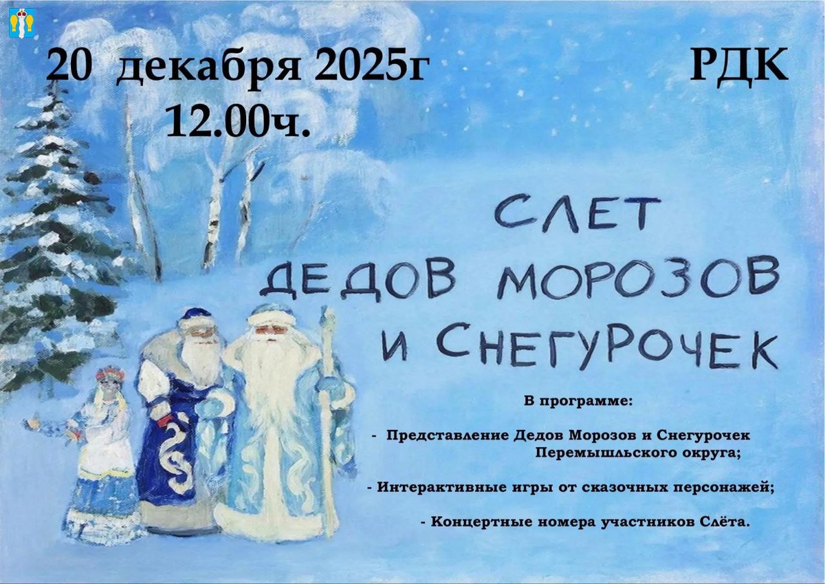 20 декабря в 12:00 в Культурно-досуговом центре села Перемышль состоится Слёт Дедов Морозов и Снегурочек ❄