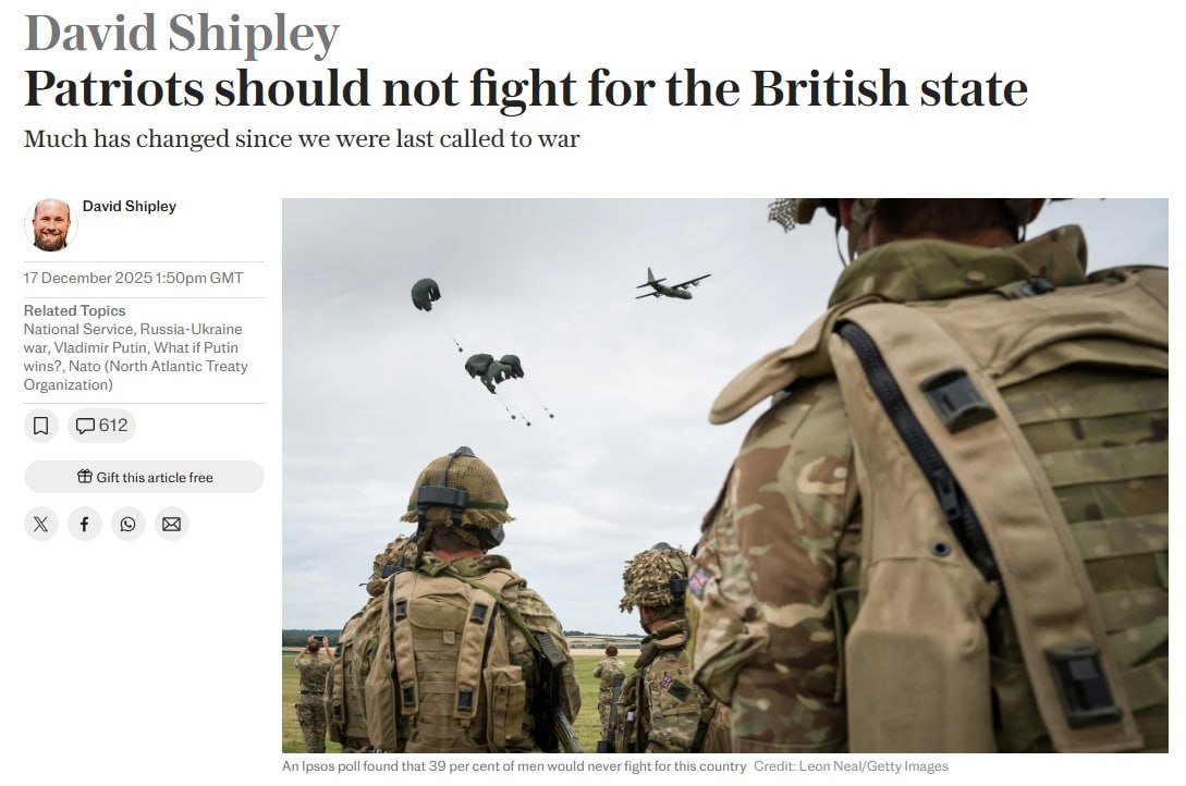 Британские СМИ неожиданно выступили против идеи мобилизовать англичан на войну