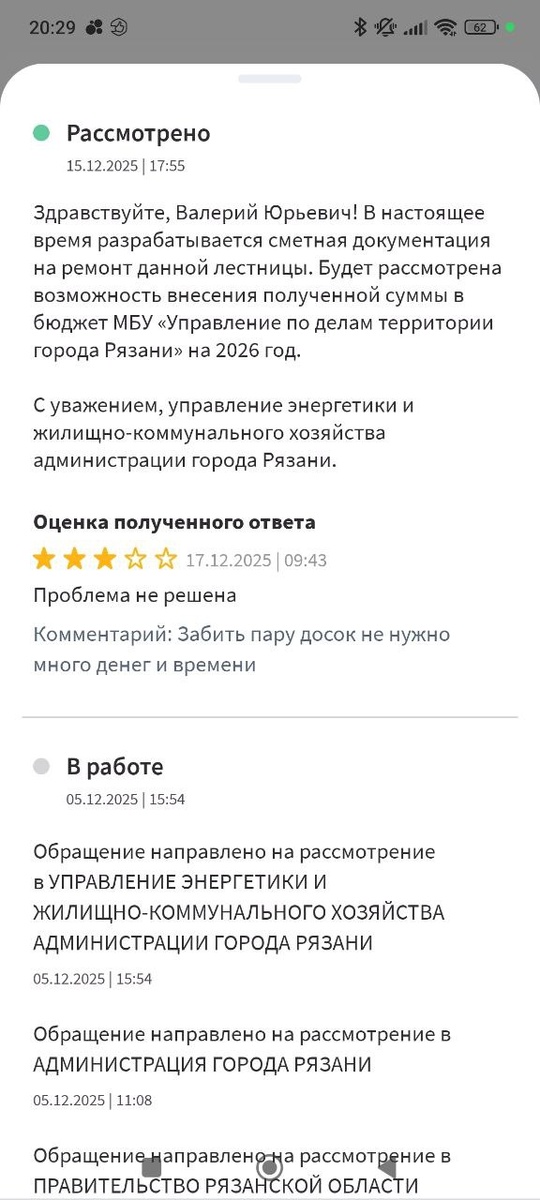 На наш пост (https://dzen.ru/media/ryazanpress/lestnica-v-nikuda-mnogoletniaia-problema-jitelei-riazani-trebuet-nemedlennogo-resheniia-69411ec10a1fe9680954e03a ) и жалобы жителей пришли ответы. Надо ждать 2026 год... А пока, видимо, людям пора курсы скалолазания пройти😀
