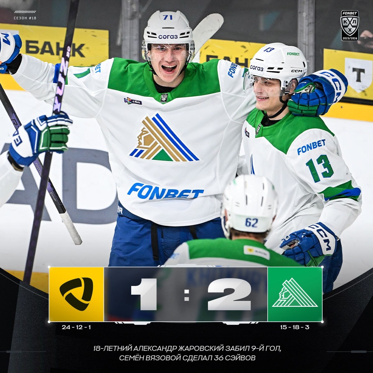 💚 «Салават Юлаев» одержал 700-ю победу в КХЛ!