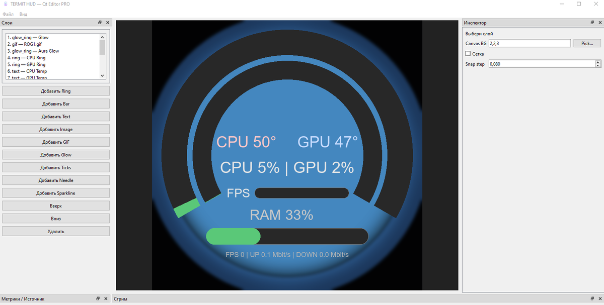 Когда ты смотришь загрузку CPU и GPU в окне — ты просто реагируешь на цифры. А мне давно хотелось, чтобы состояние компьютера было осязаемым. Не в виде ещё одного окна. А физически — как прибор, который живёт рядом с монитором. Так появился TERMIT HUD. Это отдельный небольшой дисплей, который в реальном времени показывает: - загрузку CPU и GPU - температуры - использование RAM - FPS и сетевую активность Без экранных оверлеев. Без лишнего софта поверх игр и работы. HUD живёт своей жизнью и не мешает. Самое интересное здесь не в железе. Интерфейс не собран из готовых виджетов. Кольца, бары, анимации и обновление данных считаются вживую. Вся логика собрана в отдельное приложение (exe), которое: - получает данные с ПК - формирует интерфейс - отправляет его напрямую на дисплей Я специально не показываю сейчас саму программу и внутренности. Хочу сначала понять, есть ли вообще интерес к такому формату. Вопросы, которые мне уже начали задавать: — откуда берутся данные? — какой микро