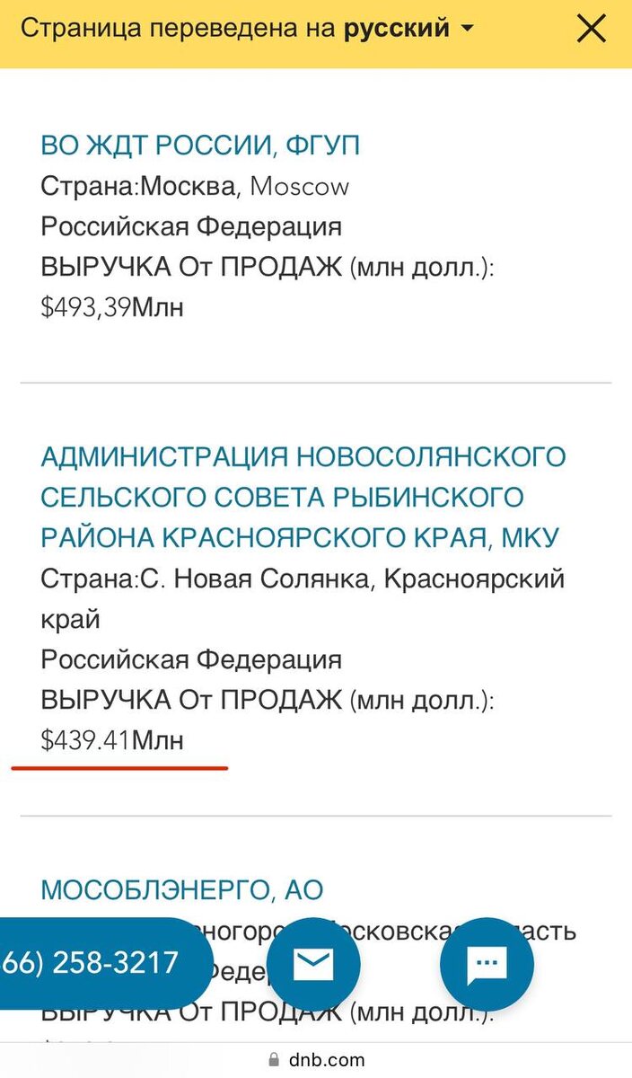 РАЙОНА КРАСНОЯРСКОГО КРАЯ с выручкой 439,41 млн. 💲. В рублях, по сегодняшнему курсу это более 35 млрд. рублей. Хотя по информации сайта audit-it.ru на балансе у данной администрации нет активов. По данным переписи 2010 года в селе проживало 2429 человек. Интересно, чем так успешно торгует администрация с. Новая Солянка, которой руководит Коркунова Галина Сергеевна? 🤔 Новая загадка века! Для справки: Сайт dnb.com принадлежит компании Dun & Bradstreet (D&B), которая является американским поставщиком бизнес-данных и аналитики. Начиная с 26 августа 2025 года, Dun & Bradstreet является частной компанией, 100% акций которой принадлежат инвестиционному фонду Clearlake Capital Group, L.P.. Год основания: 1841 (одна из старейших компаний в США). Основной продукт: Кредитные отчёты и бизнес-данные, а также знаменитая система идентификации D‑U‑N‑S Number.