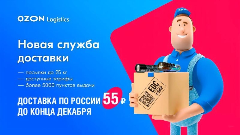 ! Спешите воспользоваться специальным предложением OZON Logistics. Всего 55 рублей по России! Выбирайте и заказывайте новогодние подарки себе и близким в EDC Shop! 🛒 Каталог @edconlybot 🛒 Заказ @edconly