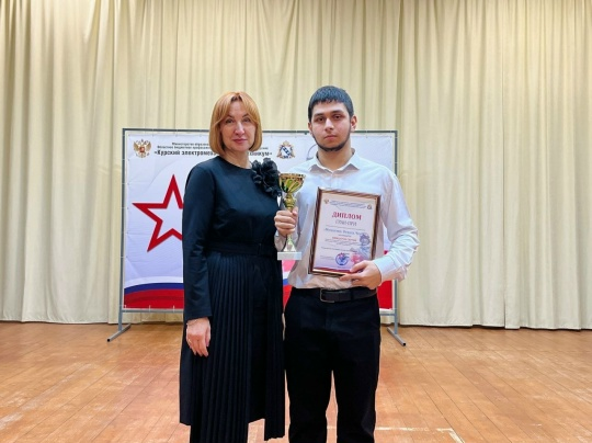 В Курском электромеханическом техникуме прошёл гала-концерт IV областного фестиваля-конкурса военно-патриотической песни «Мужество. Отвага. Честь». Участниками стали 47 вокалистов и 3 ансамбля из 16 профессиональных образовательных организаций города Курска и Курской области. 🏆По итогам фестиваля лауреатами и дипломантами стали 26 конкурсантов. Также был вручен специальный приз и приз зрительских симпатий. Обладателями гран-при стали Сергей Немцуров (Свободинский аграрно-технический техникум) и Ксения Золоторева (Курский музыкальный колледж). Лучшие номера фестиваля вошли в программу гала-концерта, где были вручены награды победителям и призерам.