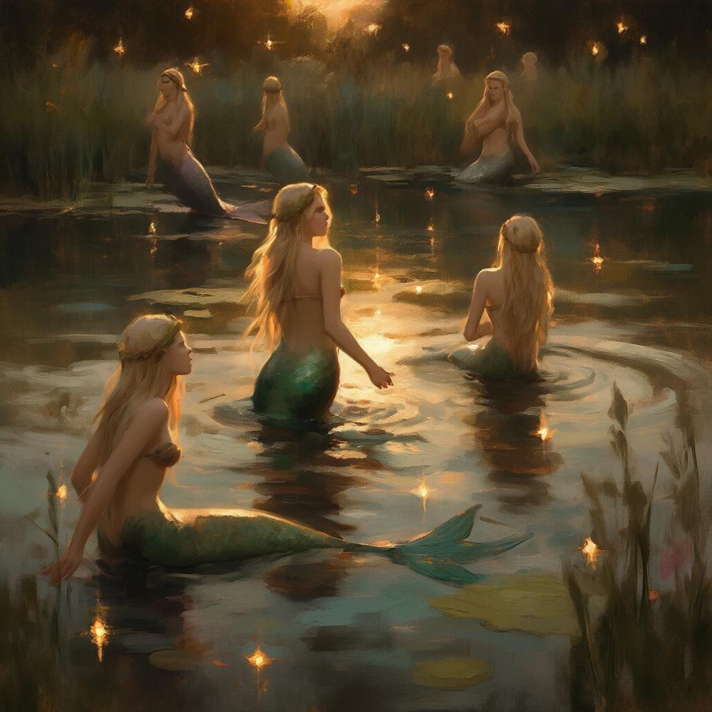 Папоротник рос у самого озера. Его гладь манила, обещая прохладу. Мороз, словно завороженный, шагнул ближе. И тут вода забурлила. Смех, подобный звону хрустальных колокольчиков, заполнил воздух. Появились русалки, окутывая Мороза своими длинными, влажными волосами. Легкие прикосновения, манящие взгляды. Они шептали что-то, но я не могла разобрать слов. Мороз, обычно такой неприступный, замер, как завороженный.