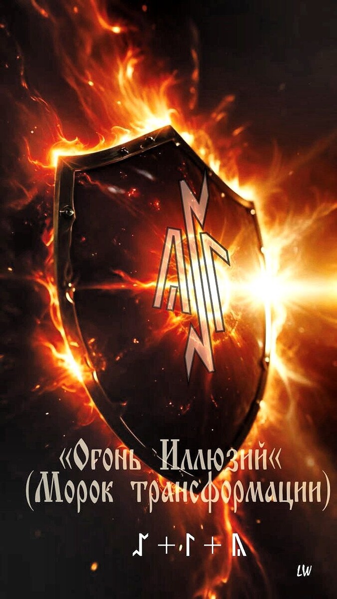 - Принцип действия: Став активирует "огненный морок", где Cweorth (центр) сжигает "старое" (реальность, воспоминания, энергии), Laguz (вокруг) добавляет поток лжи (как вода, испаряющаяся в пар), Yr (стрелы) направляет иллюзию точно в цель (как эльфийский выстрел — незаметно и метко). В пламенной форме став выглядит как огонь: Cweorth — пламя, Laguz — волны пара, Yr — летящие искры. Энергия "испаряется" в туман: чужой взгляд/диагностика видит "огонь" (опасность, перемены), но на деле это обман — реальность скрыта, а цель "сгорает" в иллюзии. Став пассивно-активный: пассивно маскирует, активно трансформирует (например, враг видит "победу", но теряет). Срок: 7–40 дней (как огонь — разгорается, угасает), с обновлением — до 3 месяцев.