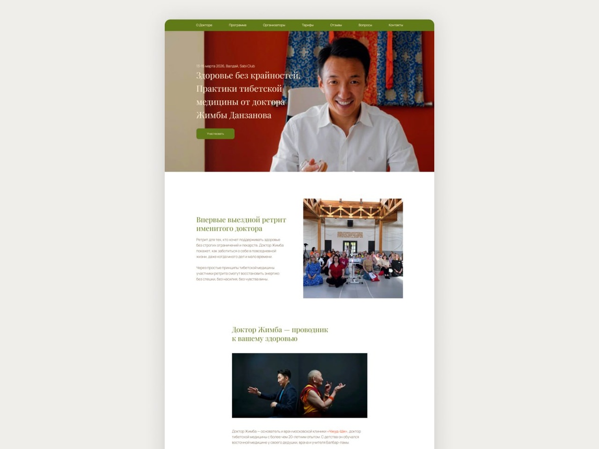 Все подтягивают хвосты 😉 Вот еще один в копилочке. Лендинг для выездного ретрита с доктором тибетской медицины. Что удивительно. Кроме закрытия хвостов, в этом году много новых заявок. Хотя обычно во второй половине декабря начинается сезон: «давайте после Нового года»)) А тут видимо никто не собирается отдыхать 🙂 Вы планируете работать в праздники? #нувсёяначала100постов пост 22