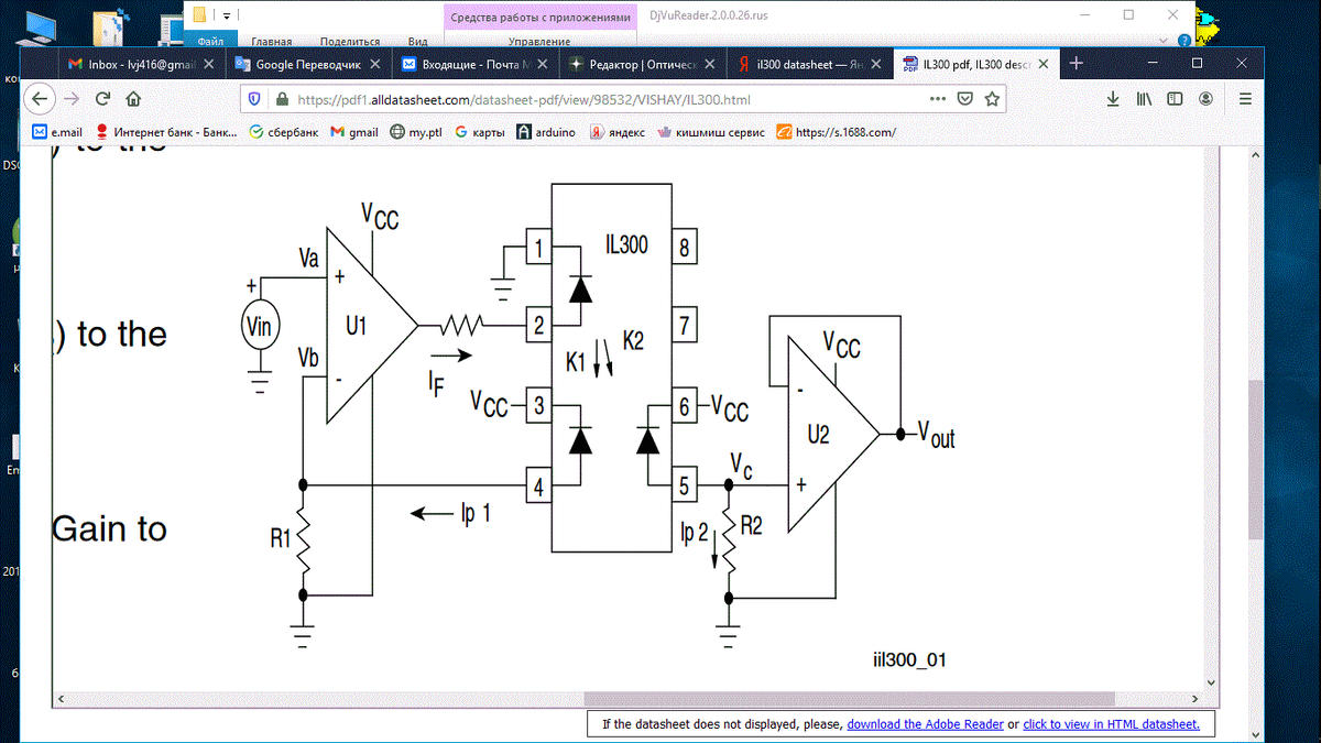 Оптические микросхемы компактны и обеспечивают изоляцию до 1.5...4 кВ и более. Они применяются в сочетании с операционными усилителями. Если рассмотреть способ использования оптической микросхемы IL300, приведенной в документации на нее (рис.1), то окажется, что на стороне , передающей сигнал, требуется наличие источника питания, например, DC-DC конвертора для обеспечения работы оптического передатчика, что доставляет мало радости любителям самоделок.