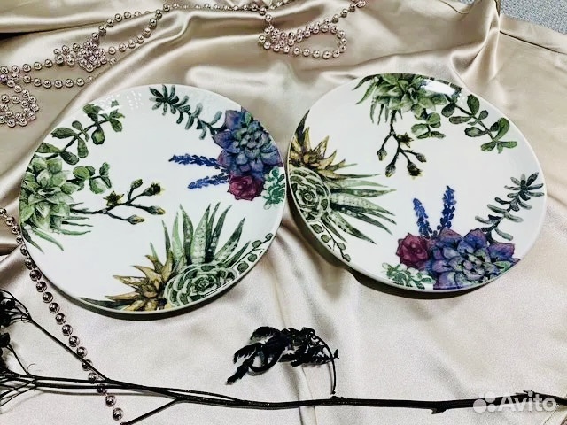 Эти тарелки сделаны из глазурованной керамики. Десертная тарелка - 19 см, обеденная тарелка - 20 см. На мой взгляд, принт с рябушкой смотрится довольно неаккуратно.