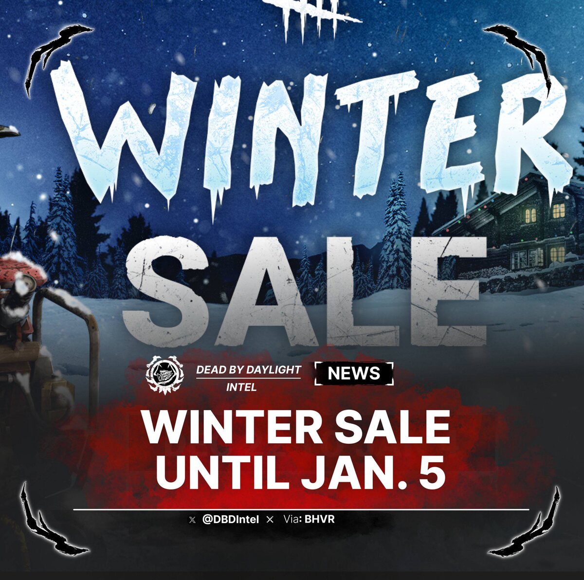 ⛄ → Базовая версия игры получила скидку 60%. → На дополнения (DLC) предоставлялась скидка до 50%. → Sinister Grace, FNaF, Tokyo Ghoul, Stranger Things не включены. 🔪 Подписаться | ⚡️Голосовать #deadbydaylight #дбд #dbd #news #dbdnews #новостидбд #новыйгод #зимадбд #eventdbd #bonechill #стрим #стим #распродажа