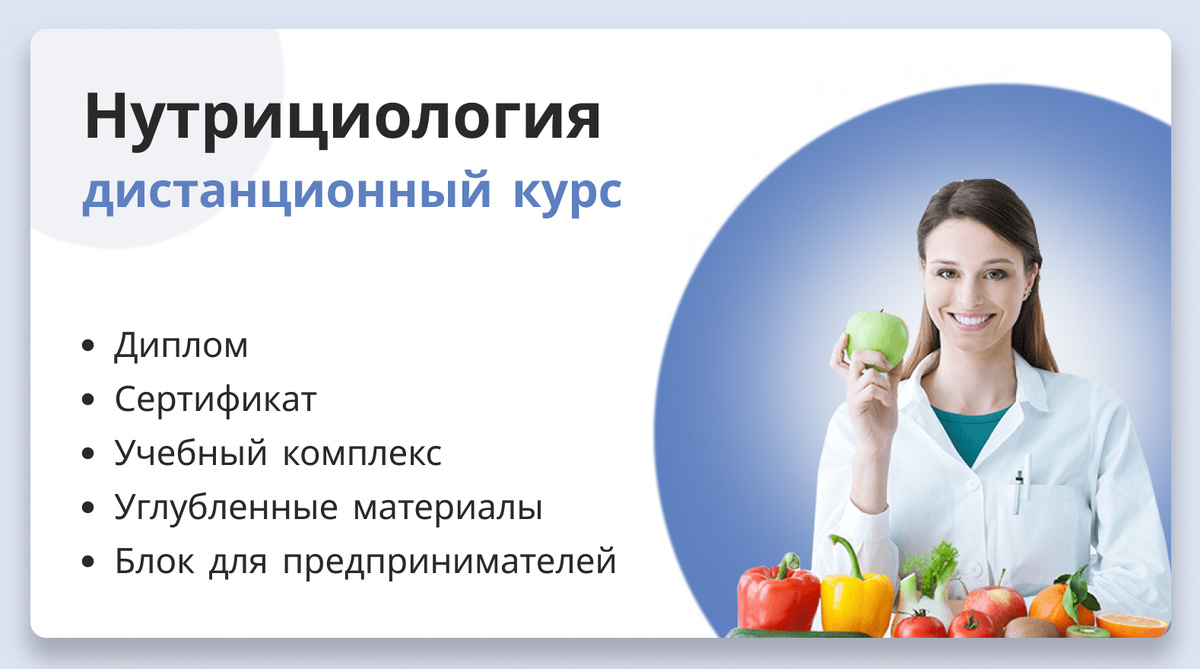 Вы, вероятно, часто задумывались о том, как повысить квалификацию и увеличить свой уровень заработка. Мы понимаем, что выбор качественных курсов может быть непростым, особенно когда на кону ваша профессиональная карьера и уровень знаний. Многие сталкивались с обратным эффектом от прохождения некачественных курсов в организациях без лицензии и без доказанной экспертности. Международный Университет Профессиональной Переподготовки предлагает вам решение этих проблем! Наш дистанционный курс нутрициологии позволит вам углубить свои знания в области питания, что поможет вам лучше помогать своим клиентам в достижении их фитнес-целей. Это ваш шанс получить квалификацию, которая может изменить вашу жизнь. Название специальности: Нутрициология. Для кого: начинающие, фитнес - тренеры, работники сферы красоты, врачи. Формат: онлайн - уроки + итоговая работа. Срок обучения: 520 часов, 3 месяца.Стоимость курса: от 9 700 рублей. Что вы получите, выбрав нас: Знания для правильного питания и поддержки