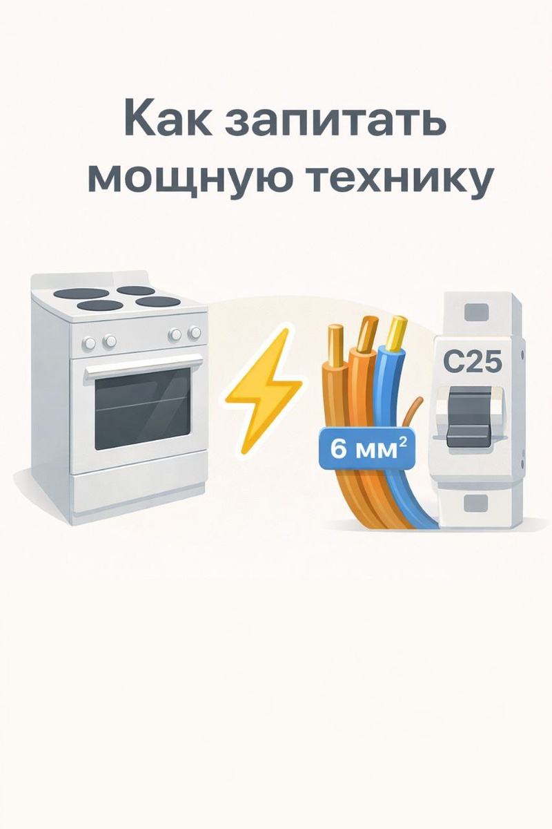 Что видно: При включении плиты, духовки или варочной панели выбивает автомат, моргает свет или греется розетка. Почему: Мощную технику подключают к обычной розеточной линии — кабель и автомат не рассчитаны на нагрузку. Диагностика: Посмотри в щите: — есть ли отдельный автомат на плиту/духовку — какой номинал автомата — какое сечение кабеля идёт к прибору Что делать: — Делать отдельную линию от щита — Кабель: ВВГнг-LS 3×6 мм² — Автомат: C25 (иногда C32 — по расчёту) — Обязательное заземление (PE) Профилактика: Закладывать отдельные линии под всю мощную технику ещё на этапе ремонта — переделка всегда дороже. --- ⚡ Вопросы и сотрудничество: Telegram: @help_electrik WhatsApp: +7 967 110-14-11 🌐 Сайт: https://electrik-clge.vercel.app/