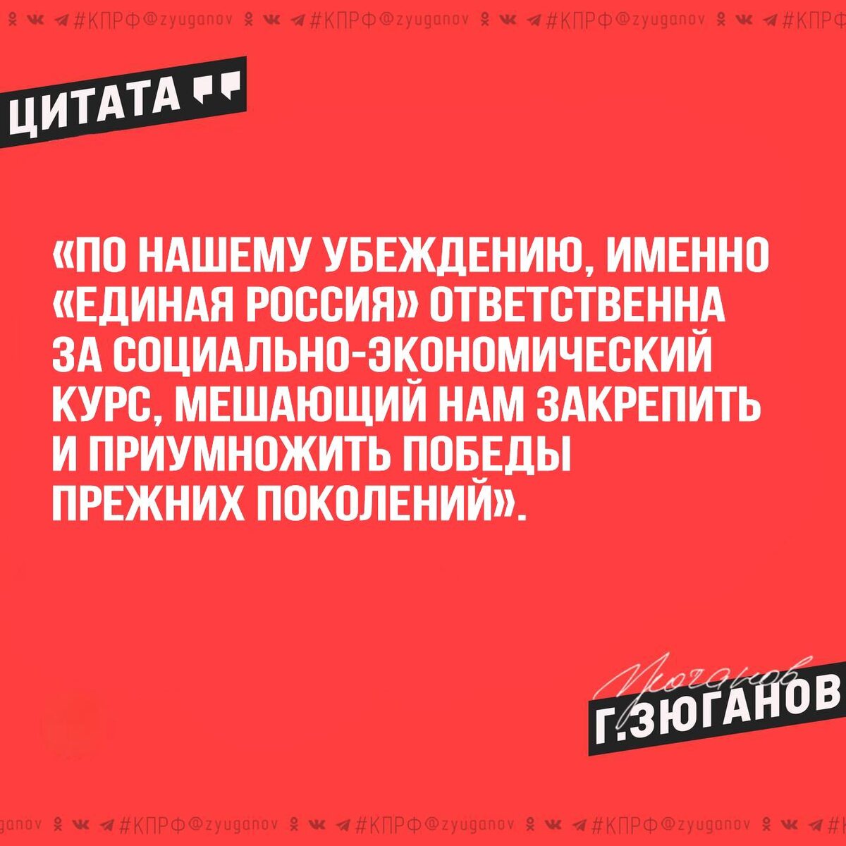 «Единая Россия» этот экзамен уже провалила. Потому что именно она ответственна за социально-экономический курс, мешающий нам закрепить и приумножить победы прежних поколений.