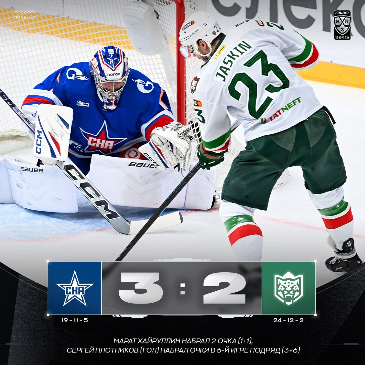 ⭐️ СКА обыграл «Ак Барс» и одержал пятую победу в шести последних матчах!