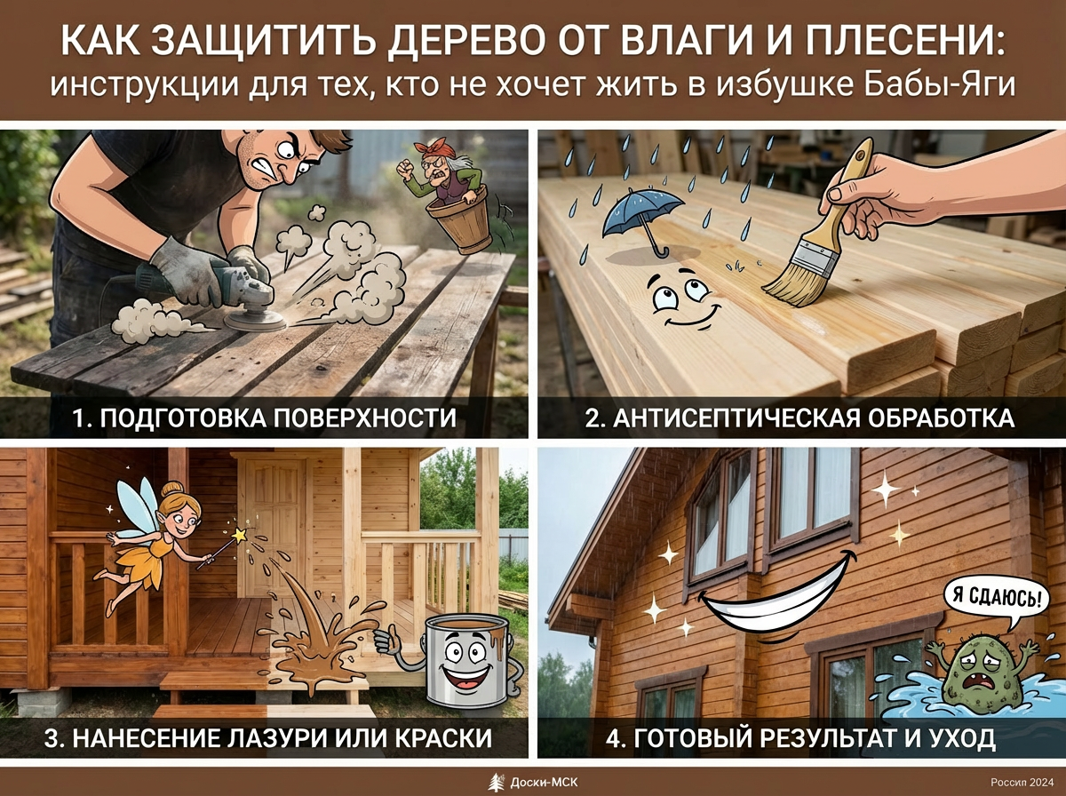 Итог: короткая формула защиты Хорошая древесина + правильное хранение + грамотная конструкция + биозащита + влагозащита + вентиляция + регулярный осмотр.