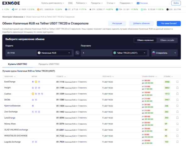 Exnode - сайт мониторинга криптообменников Ставрополя