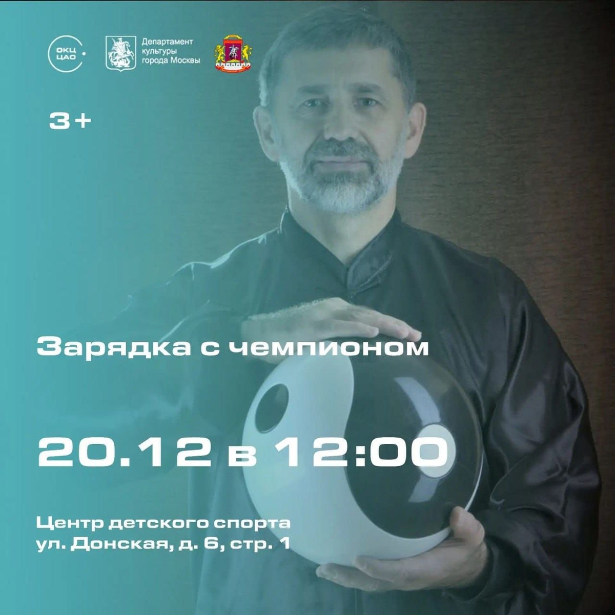 🏮 Почувствуй энергию древнего искусства и зарядись на весь праздничный сезон! 📅 20 декабря 2025 г. ⏰ 12:00 📍 Центр детского спорта (Донская, 6, стр. 1) Ведёт зарядку – чемпион международных соревнований: 🥋 Павел Викторович Нигей ▪️ Мастер 5-го дана по Ушу ▪️ Мастер 5-го дана по Айкидо (Ки-Айкидо, Син Син Тойцу, Кинсинкан) ▪️ Неоднократный чемпион международных соревнований в Китае по традиционному ушу. Это уникальный шанс провести утреннюю разминку под руководством чемпиона, зарядиться здоровьем и отличным настроением! ✅ Участие бесплатное! ✅ Форма — удобная, спортивная! ✅ Настроение — новогоднее! 📞 Регистрация обязательна! Звоните и записывайтесь: +7 (926) 337-67-71 #ОКЦЦАОспорт #зарядкасчемпионом