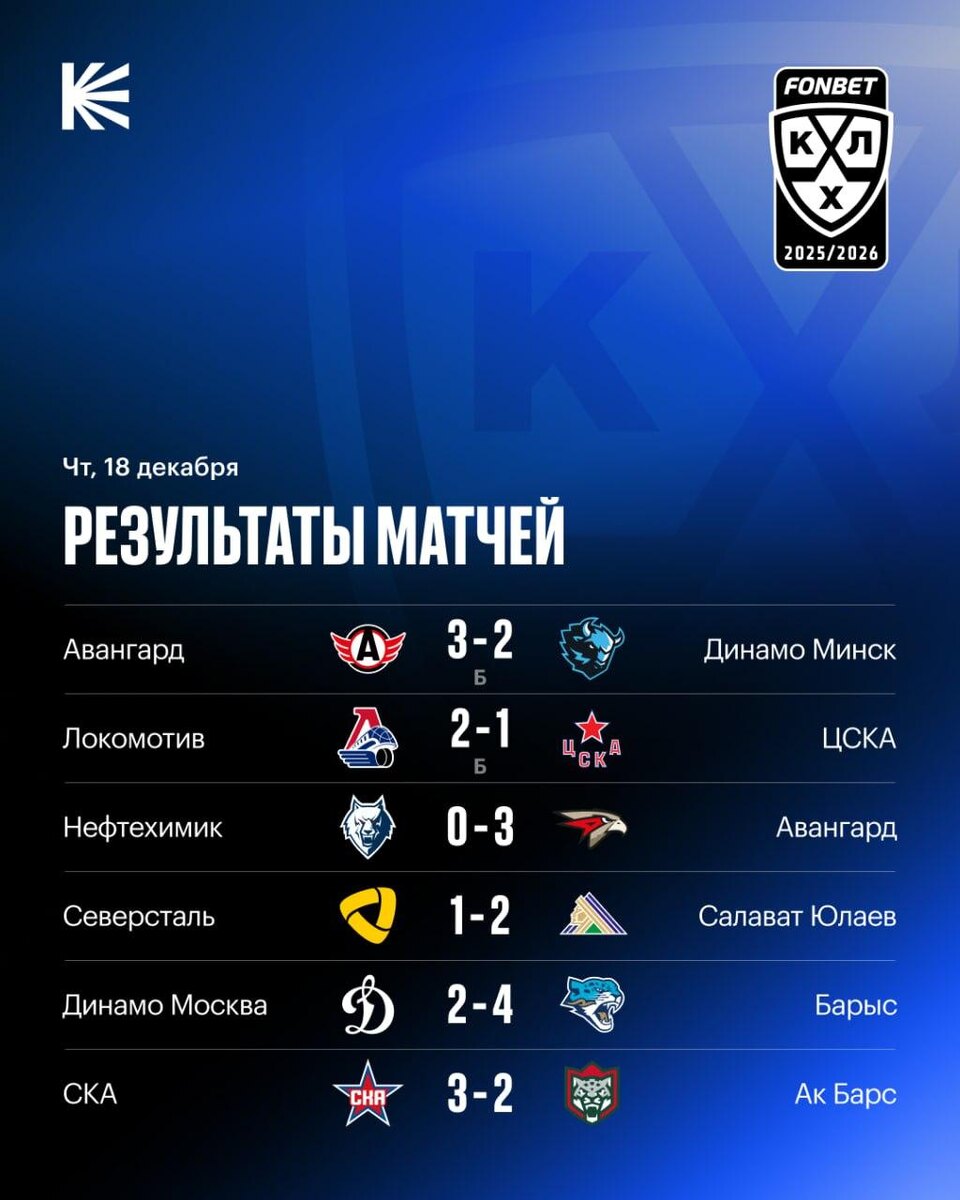 📊 «Автомобилист» и «Локомотив» победили в серии бросков, «Салават» обыграл «Северсталь», «Авангард» всухую победил «Нефтехимик», «Барыс