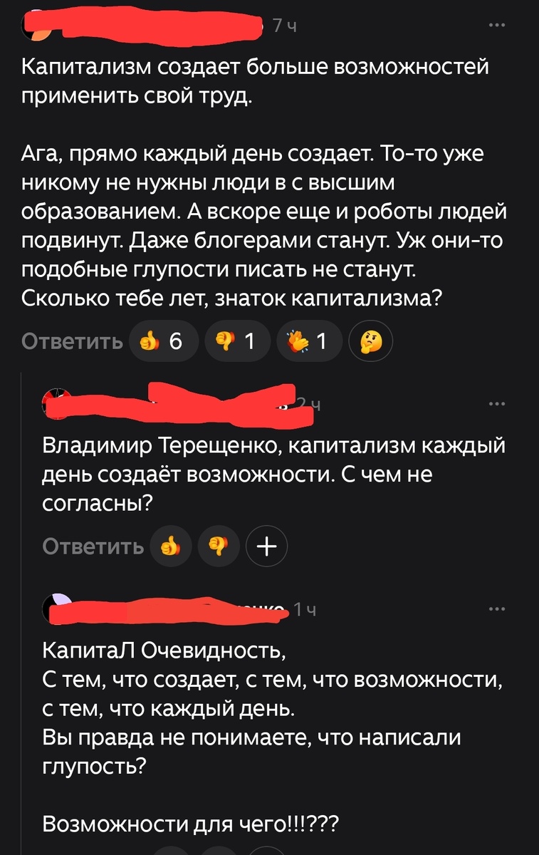 И хотя цитата вырвана из контекста, понятно, что сравнение идет с социализмом. А с чем еще сравнивают капитализм? (Вопрос риторический).