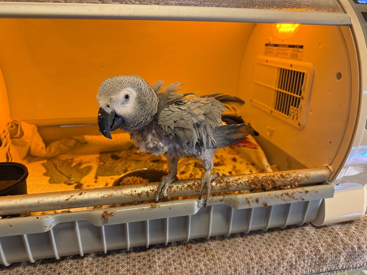После обезболивающего стало легче и теперь она откровенно бунтует пытаясь разобрать брудер, не знаю что случилось, возможно она свалилась и ушиблась :( По Тари. Боже мой даже не пытайтесь меня убедить что существует что угодно более чумазое чем жако, разве что наверное обезьяны. Один день в брудере и она уже накормила кашей всё вокруг, зато вон какой зоб наела 😅