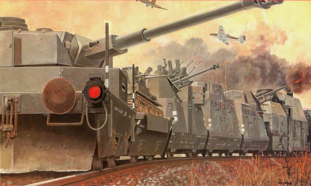 Два бронепоезда работают в связке: один бьёт по путям, другой - по самому составу. Теперь немецкому стальному монстру не уйти.