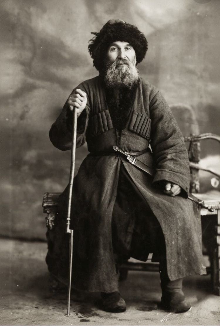 Мизур — Марзоев (фото из открытого доступа). Любопытно, что на конце палки — оружейный штык, так она не только помогает при ходьбе, но и при необходимости превращается в грозную пику. (@Obnovlenijemira)