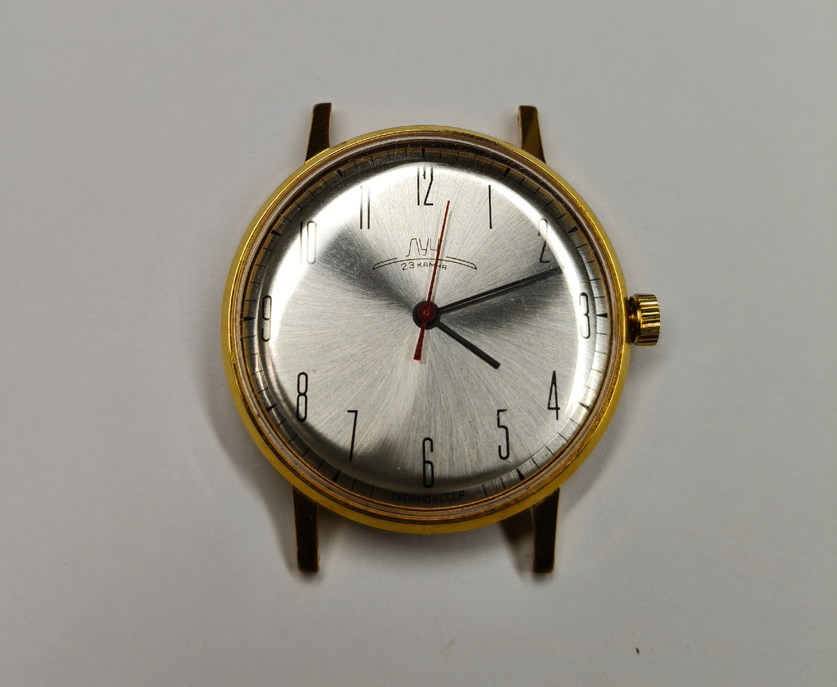 Доброго времени суток! Очередные часы от подписчика. Луч калибра 2209 в отличном состоянии и на ходу. Просит сделать репассаж, поехали. Решил вначале проверить на приборе, в принципе часы рабочие. Может амплитуда маловата. Посмотрим после обслуживания. Открываю крышку. По рискам на корпусе видно, что часы уже не раз вскрывались. Снимаю ободок со стеклом. Циферблат и стрелки как новые. Очень тонкие часы. Приступил к разборке. Разбираю полностью механизм, в цапфах есть небольшое загрязнение. Все детали почистил бензином и приступаю к сборке и смазке. Установил колёса. Собрал механизм - ходят хорошо. Камни баланса также промыл и смазал. Да, амплитуда выросла, репассаж явно им на пользу пошёл. Циферблатом вверх нормально. На боку нормально. Отличные часы. Состояние коллекционное. Будут работать долго. Уже отправлены владельцу. Всем удачных ремонтов!
