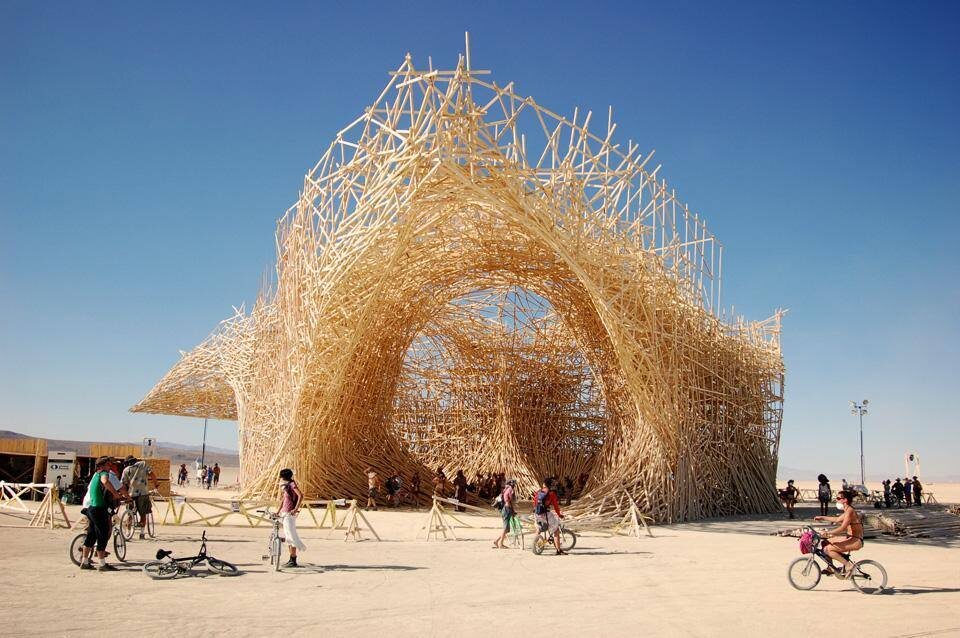 Arbor - один из самых изящных и утончённых примеров сакральной архитектуры на Burning Man. И, как и полагается деревянным инсталляциям, в конце он завершил свой путь в огне.