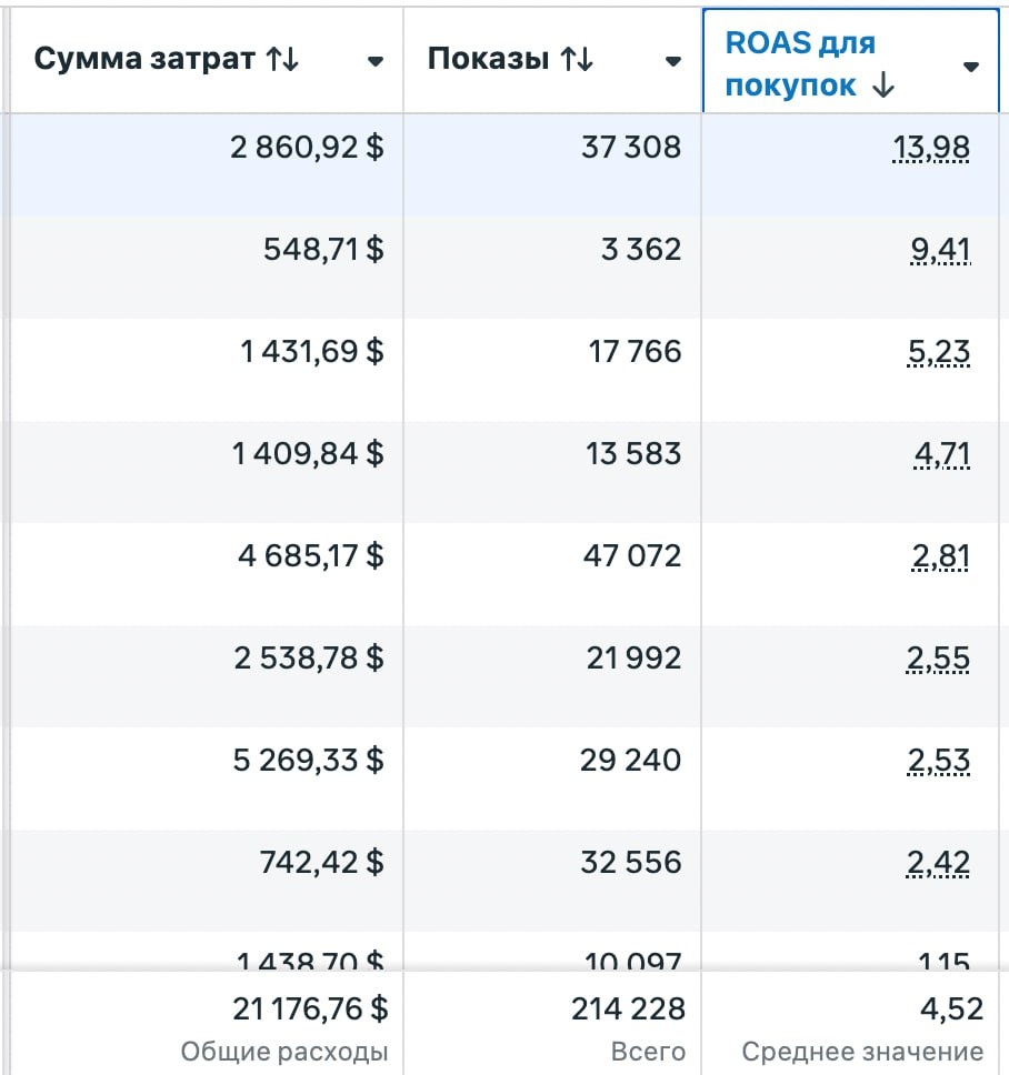 ) Большинство смотрят на ROAS как на абстрактную цифру. Типа: — «Нормально ли 2.5?» — «А 2 — это уже плохо?» Правильный ответ всегда один: зависит от юнит-экономики. Разберём на реальных цифрах. Средний чек: €63 Себестоимость + доставка: €25 Чистая прибыль с одного заказа: €38 👉 Отсюда сразу считается точка безубыточности — ROAS 1.66. Всё, что ниже — ты платишь за рекламу и теряешь деньги. Без эмоций. Просто математика. Теперь смотрим прогноз. Допустим: рекламный бюджет: €900 целевой ROAS: 2.5 Что это значит на практике? Ты получаешь: €2 250 выручки 36 заказов €25.20 — стоимость привлечения клиента ≈ €1 350 чистой прибыли И это уже не «красивые цифры в Ads Manager», а реальные деньги, которые остаются в бизнесе после рекламы. Вот зачем вообще нужен ROAS: чтобы понимать, какой ROAS для тебя минимальный (1.66), какой рабочий, и какой можно масштабировать, не убивая маржу. Пока ты не считаешь это ты не управляешь рекламой, ты просто смотришь на отчёты. Забрать табл