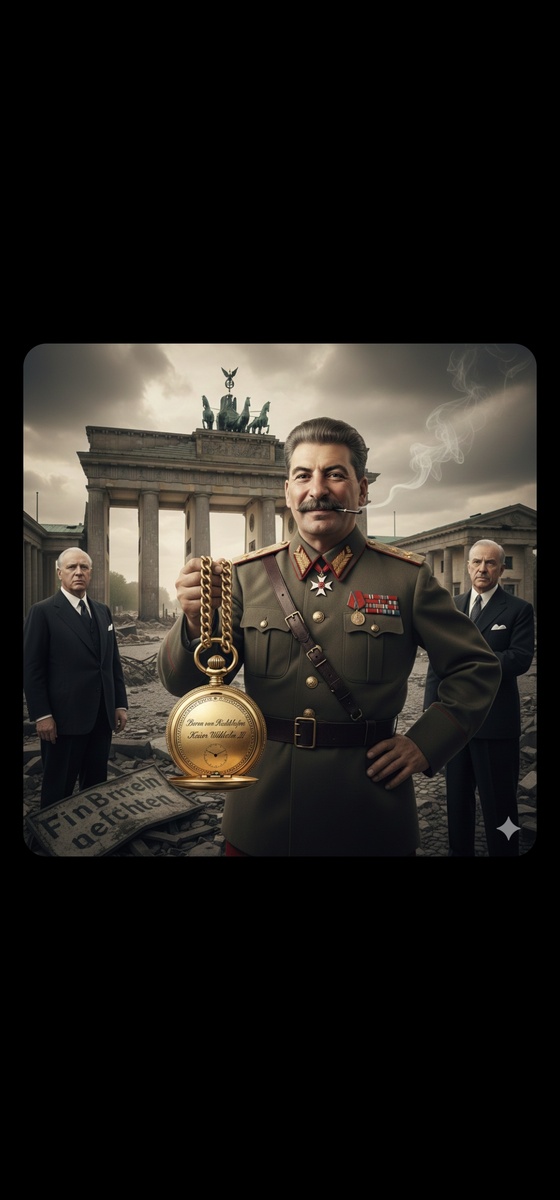 1945 год, Потсдамская конференция. Черчилль, Трумэн и Сталин вышли в перерыве покурить. Трумэн хвастается золотыми часами: