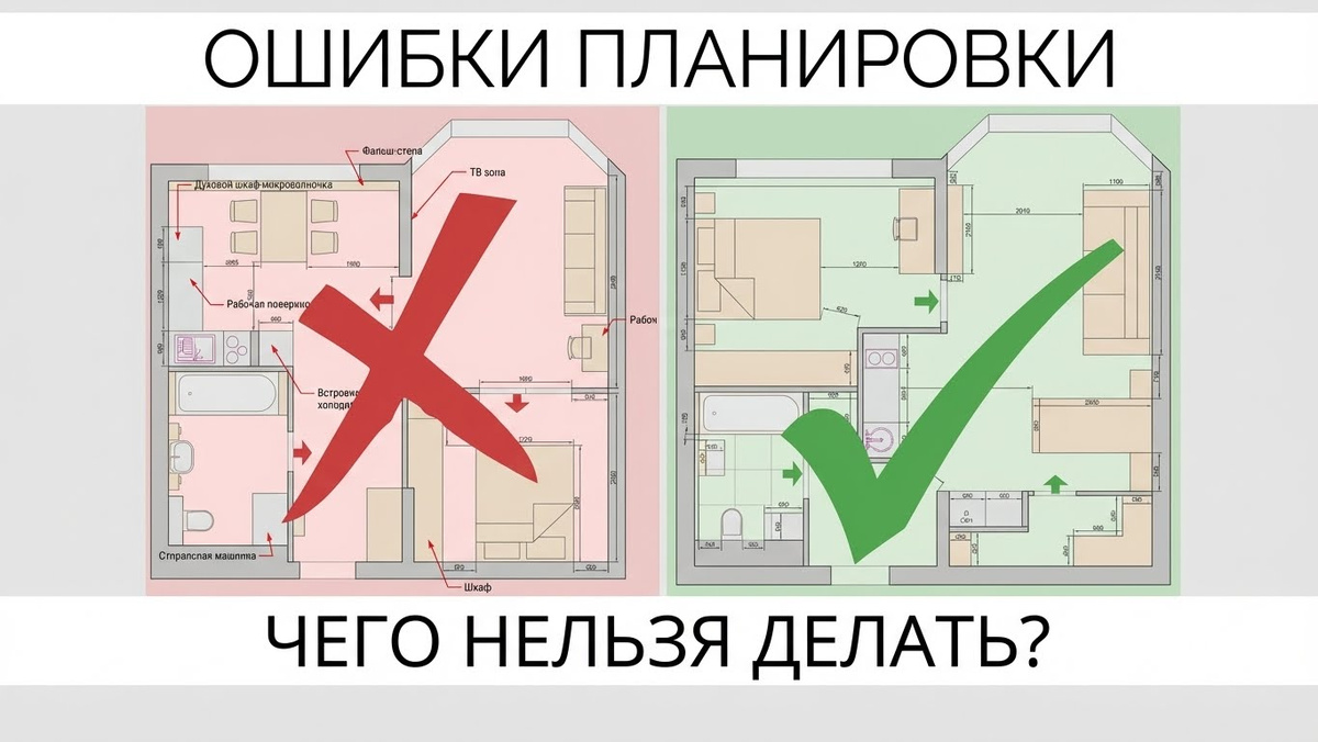 Да. Большинство ошибок видно на этапе плана: длинные коридоры, проходные комнаты, отсутствие мест хранения и нелогичные маршруты движения по квартире.