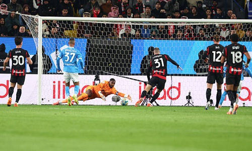 В Эр-Рияде (Саудовская Аравия) состоялся первый полуфинал Суперкубка Италии, в котором встречались «Наполи» и «Милан», сообщает Sports.kz. Матч завершился победой «Наполи» со счетом 2:0. На 39-й минуте Давид Нерес вывел неаполитанцев вперед, а на 63-й результативным ударом отметился Расмус Хойлунд. Таким образом, «Наполи» вышел в финал Суперкубка Италии, где сыграет с победителем матча «Болонья» — «Интер», который состоится в ночь с 19 на 20 декабря. Добавим, что действующим обладателем Суперкубка Италии является «Милан»: в прошлом сезоне он в дерби одержал победу над «Интером» со счетом 3:2. ФК «Наполи»
