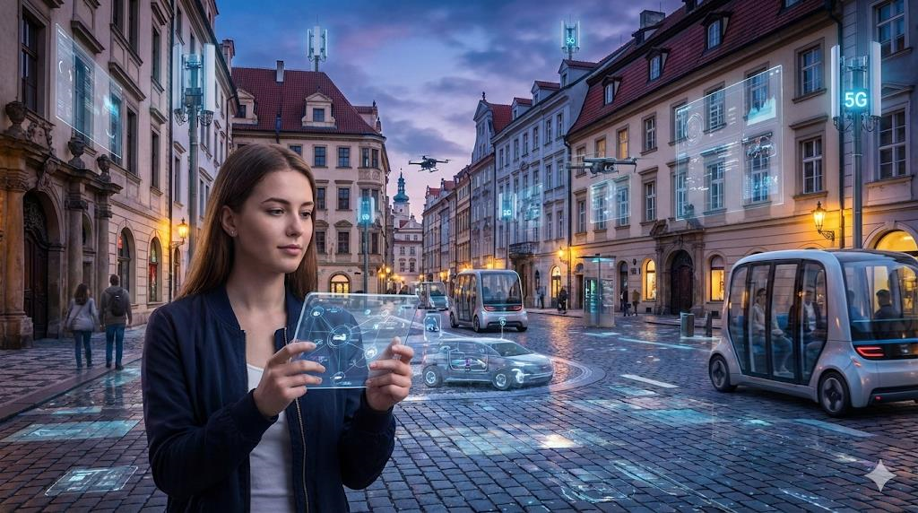 Мы до сих пор живём в городах, спроектированных по лекалам индустриальной эпохи: асфальт, пробки, шум и централизованные службы, реагирующие с запозданием. Но этот бетонный скелет уже трещит. Привычные улицы и дома вступают в конфликт с реальностью, где каждый метр насыщен датчиками и управляется алгоритмами. Город начинает чувствовать нас раньше, чем мы его замечаем, подстраивая свет, транспорт и сервисы под наше присутствие. Для большинства 5G — это быстрый интернет, но это лишь видимая часть. На деле 5G становится «интеллектуальным электричеством», нервной системой мегаполиса. В индустриальном городе инфраструктура реагирует постфактум; в умном — предугадывает события. 5G позволяет объединить до миллиона устройств на квадратный километр, превращая город в единый чувствующий организм. Интернет перестаёт быть в телефоне и проникает во всё: обувь, мусорные контейнеры, фонари, стены. Дороги и светофоры начинают принимать решения сами, видя реальный поток людей и машин. Город перестаёт