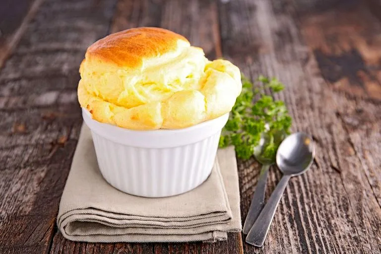 Сыр мелко натереть, растопить масло, высыпать в него муку и пропассировать до светло-коричневого цвета, постепенно вливать молоко и кипятить 2 мин, затем добавить, помешивая, тертый сыр с желтками и специи по вкусу. Всю массу осторожно смешать с сильно взбитыми белками, 4 формы для суфле смазать изнутри маслом и посыпать тертым сыром, выложить в них полученную массу и выпекать в предварительно нагретой до 200°С духовке около 20 мин до золотисто-коричневого цвета. Суфле с маленькими порциями салата подавать к столу вместо сыра.