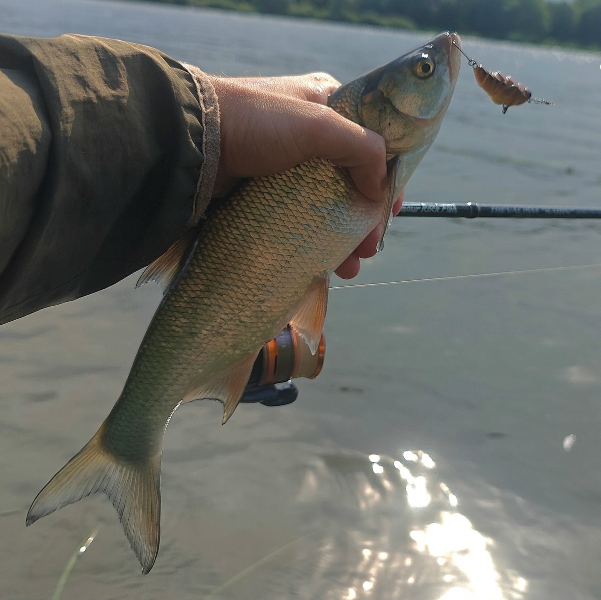 Рассветный клев не задался, и уйти от нуля не удалось. Было четыре промаха на волкер, и каждый из них вызывал бурю негативных эмоций. Тогда я решил замедлить проводку — и это сработало! На этот же волкер удалось поймать первого жерешка на 33 сантиметра. Совсем мелкий, но в зачет идет. Играем дальше!