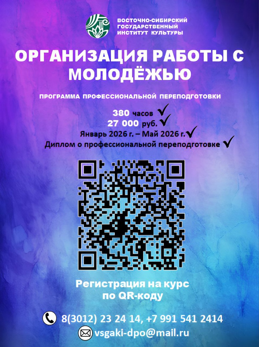 ВСГИК приглашает пройти обучение по программе профессиональной переподготовки «ОРГАНИЗАЦИЯ РАБОТЫ С МОЛОДЕЖЬЮ