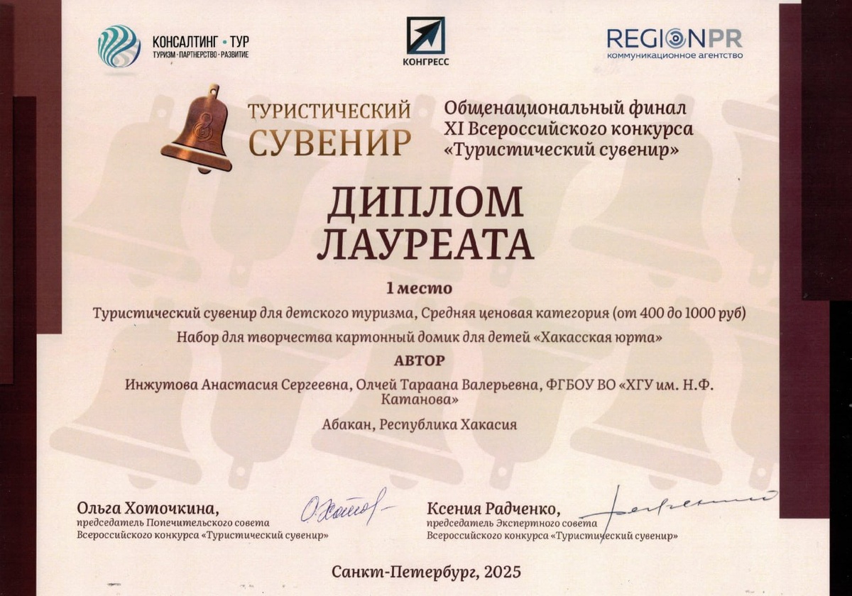 🫣😏🙈🙉 Игрушечная юрта студенток ХГУ признана лучшим турсувениром в России👏 В Санкт-Петербурге состоялся общенациональный финал XI всероссийского конкурса «Туристический сувенир». 🔥Набор для творчества картонный домик для малышей «Хакасская юрта» удостоен победы в направлении детский туризм. В этом году на всероссийский конкурс поступило 3568 заявок из 79 регионов России, а также Республики Беларусь. В общенациональный финал допущено 1066 конкурсных позиций. Подробнее на сайте 😀ХГУ I Подписаться 📱 Одноклассники 📱 Rutube 📱 Дзен ™️ВКонтакте 📱 MAX #ХГУ #турсувенир2025 #ИТИ_ХГУ #вуз #khsu #всероссийскийконкурс #итоги
