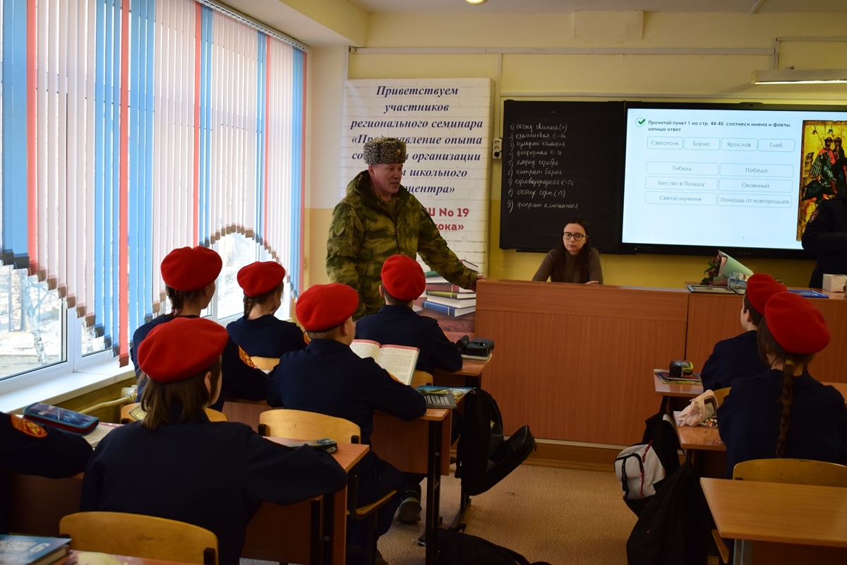 Заместитель командующего Восточным округом Росгвардии генерал-майор Михаил Романов в рамках рабочего визита в Приморский край совершил ряд встреч с представителями общественности в регионе. Он посетил общеобразовательную школу №19 г. Владивостока, где встретился с учениками профильного кадетского класса войск национальной гвардии. В присутствии администрации школы заместитель командующего Восточным округом Росгвардии вручил грамоты Анастасии Сажиной и Диане Гридиной за участие в ведомственном конкурсе самодеятельности «Солдаты Антитеррора». Также Михаил Романов тепло поблагодарил и вручил подарки художественному руководителю образцовой студии «Феерия» Эльвире Павловой за помощь в подготовке к конкурсу. После официальной части Михаил Романов пообщался со школьниками, рассказал о своем детстве, дал напутственные советы подросткам. Кадеты в свою очередь поделились с генерал-майором впечатлениями об обучении в профильном классе и достижениях в основах военной подготовки. В завершение визи