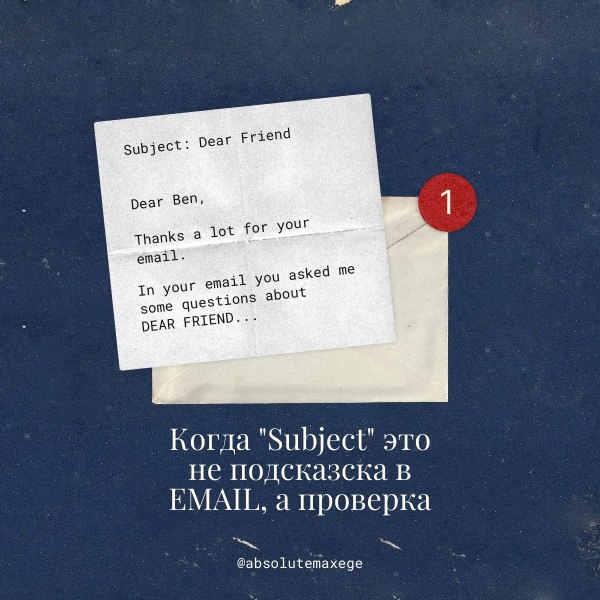 Тема письма (Subject) — это не просто формальность. Многие студенты её бездумно копируют, и отсюда начинаются ошибки. Например: на пробном задании тема письма была “Dear Friend”, и кто-то в ответе написал: “You asked me about Dear Friend…” — звучит странно, правда? Или тема письма — “Clothes”, а студент пишет: You asked me about clothes. My favourite supermaket is Detskiy Mir. Тут логика теряется. 👉 Совет простой: всегда внимательно смотрите на тему письма и употребляйте её в ответе только если она логично вписывается. Если нет — переформулируйте или просто переходите к смыслу вопроса. Переходи в мой телеграм-канал, там еще больше лайфхаков: https://t.me/absolutemaxege/3076
