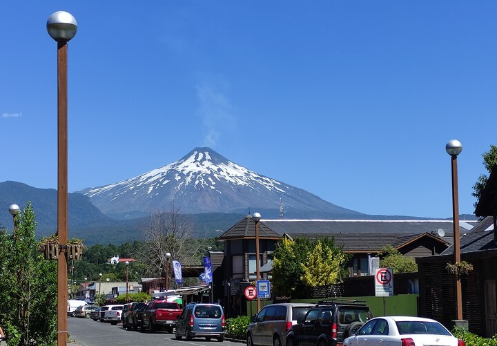 Но куда больше впечатляет дымящийся вулкан на фоне этих построек. Вильяррика — самый активный вулкан страны, с регулярными извержениями и лавовым озером. Подняться сейчас нельзя. Запрет.