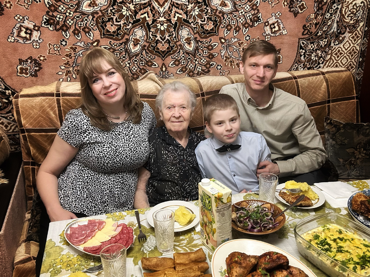 Отмечали дома у папы, семейно. Помимо нас еще был крёстный Костика - Коля, и друг семьи Саша.