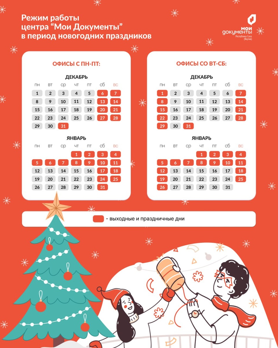 Режим работы офисов центра “Мои Документы” в период празднования Нового года и Рождества