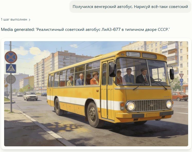 А он (Perplexity) хорош! Вот как ответил на моё замечание, что вчера нарисовал венгерский автобус вместо советского. Найдите 5 отличий (может быть больше)