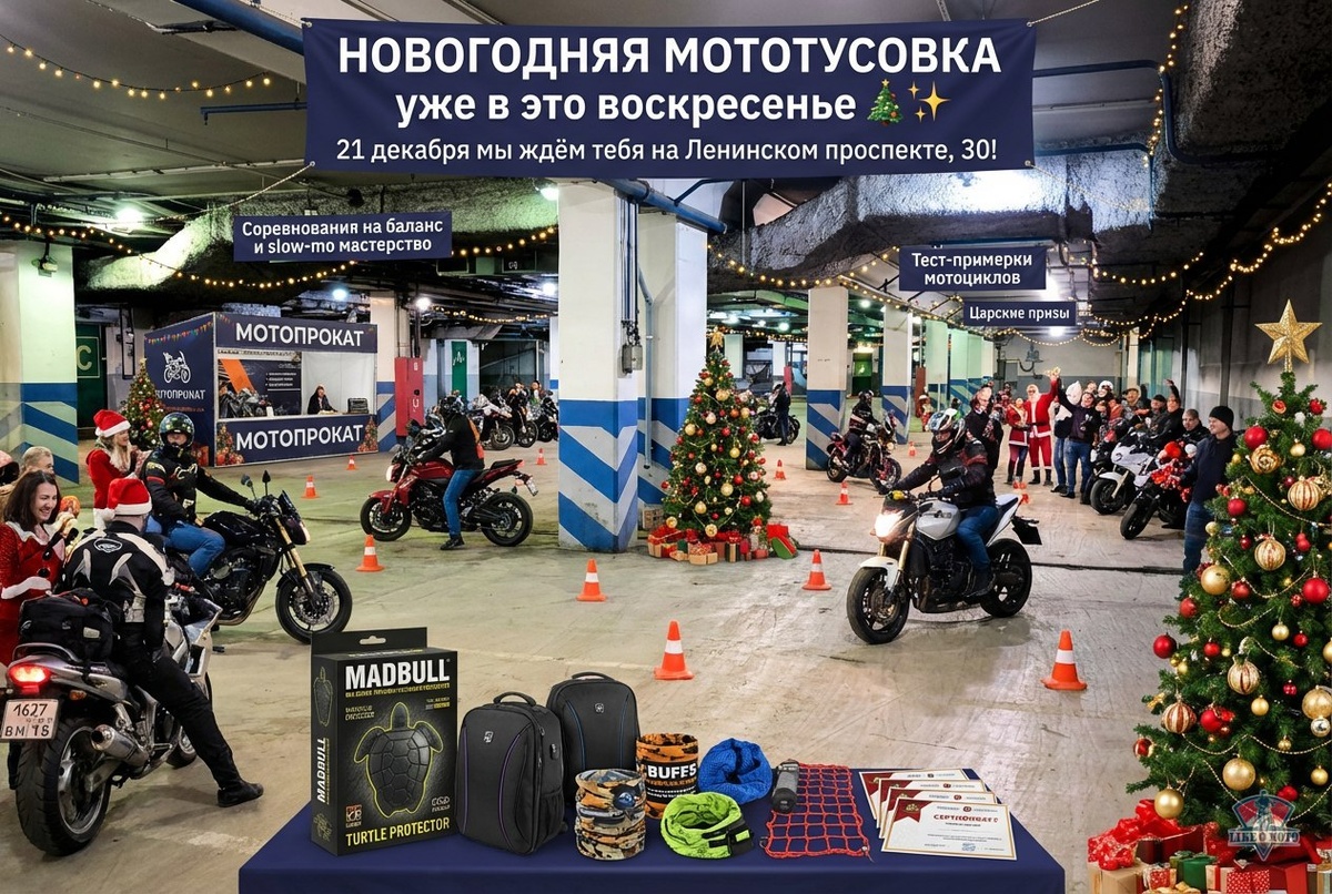 🎄✨ 21 декабря мы ждём тебя на Ленинском проспекте, 30 — на самом душевном мото-празднике Москвы! Пора встретиться и зарядиться совместной мотояркостью перед Новым годом. Что будет: - Эксклюзивные соревнования на баланс и slow-mo мастерство — инструкторы тоже в игре - Тест-примерки мотоциклов от мотопроката - Тёплая атмосфера, общение и море позитива Царские призы для победителей и подарки для всех: - 1 место: Черепаха MADBULL ElementUM + сертификат на практику - 2, 3 места и далее: мотосумки, бафы, сетки, сертификаты и брелоки Приходи всей мотосемьёй, отдыхай и вдохновляйся! Ждём 21 декабря на Ленинском, 30! Свяжитесь с нами → Узнать подробности