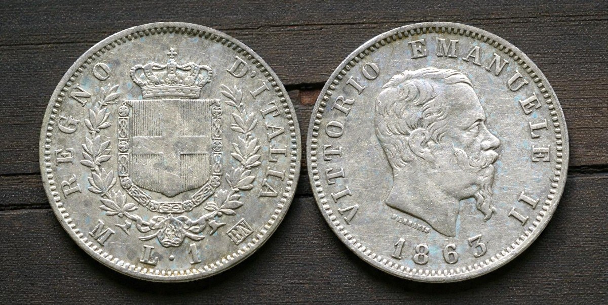 Итальянские лиры с портретом Виктора Эммануила II начали чеканить с 1861 года, сразу после объединения Италии. Эта монета стала одним из первых символов нового государства, только что появившегося на карте Европы. Спокойный и уверенный профиль короля подчёркивал идею стабильности и единства страны. Дизайн лиры получился сдержанным, без излишней пышности, но очень гармоничным. В серебре эта монета смотрится особенно благородно и чисто. Для современников лира была знаком новой эпохи и надежды на будущее. Сегодня она воспринимается как немой свидетель рождения нации.