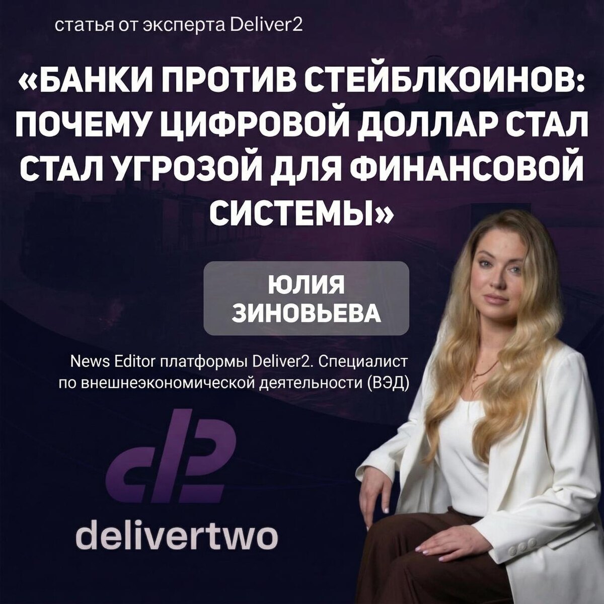 🤩 За последние годы стейблкоины из «эксперимента для криптоэнтузиастов» превратились в реальный инструмент международных расчётов. Особенно — в трансграничной торговле, логистике и ВЭД, где скорость, предсказуемость и обход избыточных барьеров решают всё. Но именно поэтому цифровой доллар и стейблкоины сегодня стали прямой угрозой для традиционной банковской системы. В новой статье на Deliver-2 разбираем: почему банки и регуляторы всё жёстче выступают против стейблкоинов как цифровой доллар меняет саму логику международных расчётов в чём конфликт между банками, государствами и частными эмитентами почему стейблкоины опасны не для экономики, а для банковского контроля какие риски и возможности это создаёт для бизнеса, импорта и трансграничной торговли 📉 Банки теряют: — контроль над платежами — комиссионные доходы — монополию на трансграничные расчёты 📈 Бизнес получает: — скорость — снижение издержек — альтернативу традиционным платёжным каналам Отдельно в статье: роль стейб