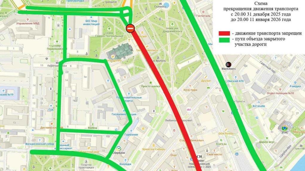 В Омске почти на две недели перекроют движение по улице Ленина из-за проведения «Зимнего Любинского». Проезд для транспорта будет закрыт с 20:00 31 декабря 2025 года до 20:00 11 января 2026 года. Ограничение введут на участке от транспортной развязки на площади Победы до улицы Партизанской. Движение остановят для всех видов транспорта, сообщает пресс-служба мэрии. Объехать перекрытый участок можно будет по улицам Гагарина, Тарской, Спартаковской, Партизанской, Бударина и Щербанева. На подъездах к зоне ограничения установят информационные стенды со схемами объезда. В мэрии просят водителей заранее планировать маршруты и учитывать временные изменения в организации движения. Читайте также на Om1 Омск: