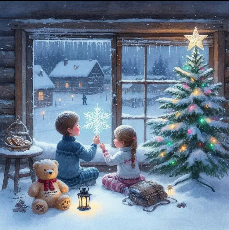 Тихо, как индейцы, натянув тёплые свитера и куртки поверх пижам, взяв фонарик и волшебную снежинку-компас, они выскользнули из дома. Луч от снежинки вёл их через спящий двор, в старый парк, где вековые ели стояли, как молчаливые великаны в снежных шубах. Мороз щипал щёки, но внутри у детей горел азарт исследователей.